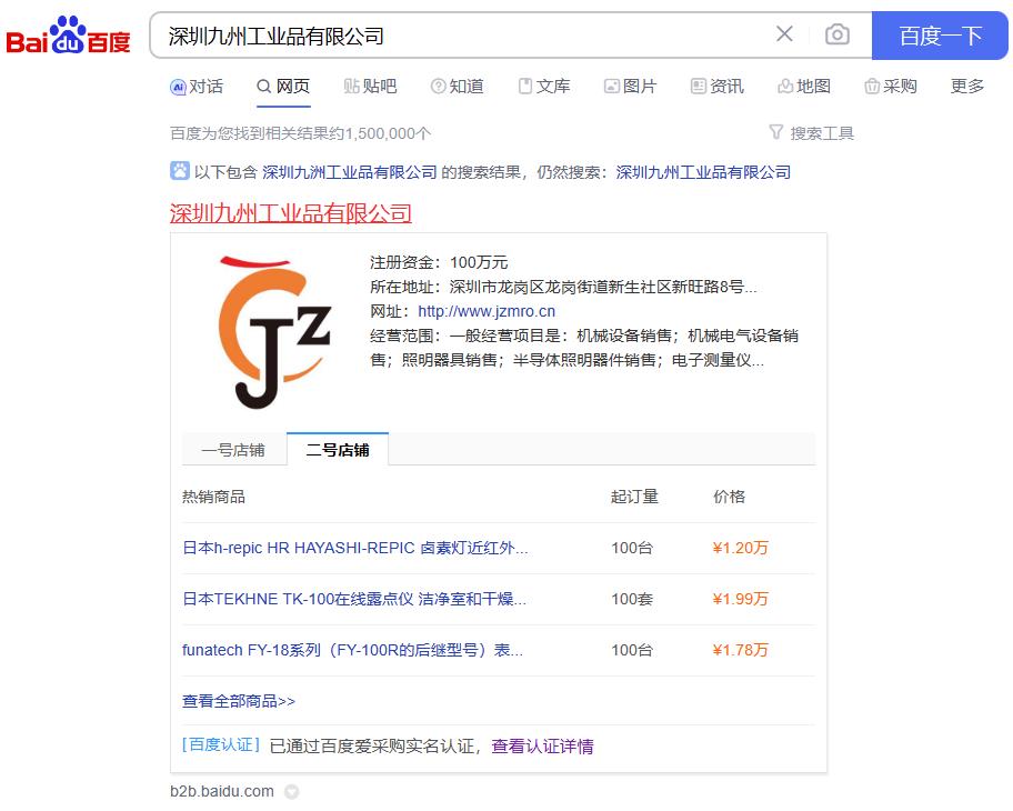 热烈祝贺深圳九州工业品有限公司入驻百度爱采购,服务由深圳市品汇互联网络科技有限公司提供。¥ 0.00立即购买