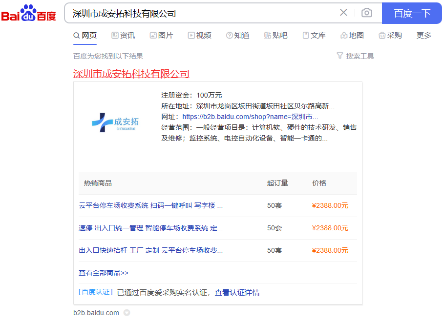 热烈祝贺深圳市成安拓科技有限公司入驻百度爱采购,公司主营:云平台停车场设备、车牌识别一体机、无人值守停车系统等。