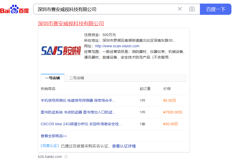 热烈祝贺深圳市赛安威视科技有限公司入驻百度爱采购第四年,公司专注于商超防盗技术的研发与销售,超市防盗器,服装防盗器,图书馆防盗设备。服务由深圳市品汇互联网络科技有限公司提供。
