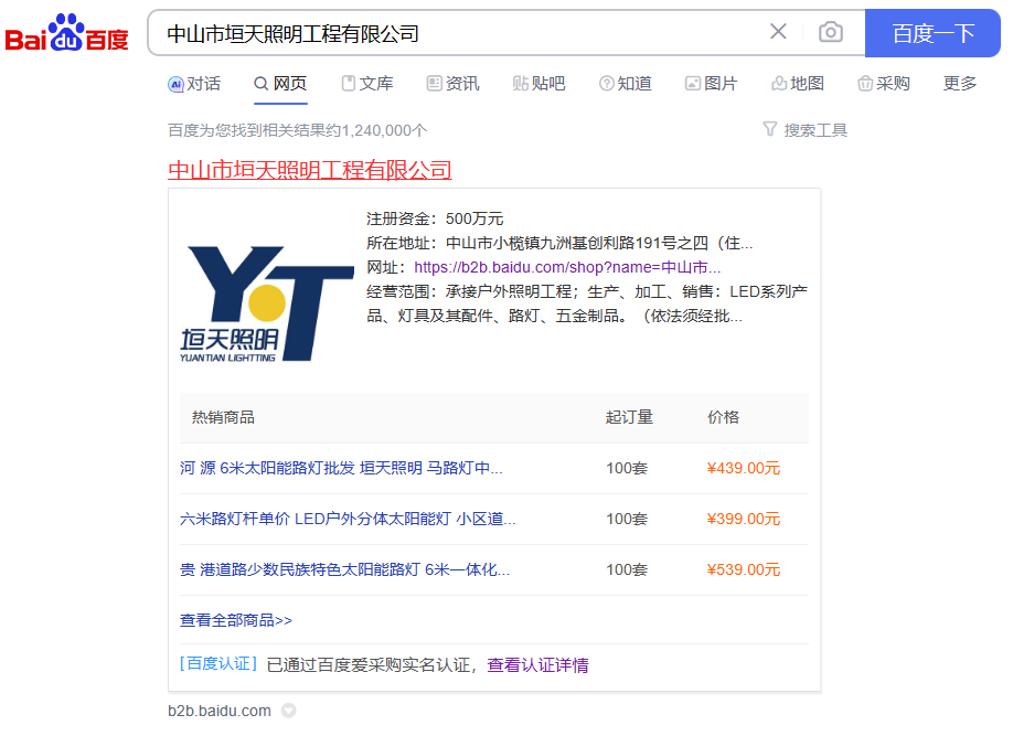 祝贺中山市垣天照明工程有限公司入驻百度爱采购。公司经营范围:承接户外照明工程;生产、加工、销售:LED系列产品、灯具及其配件、路灯、五金制品等。